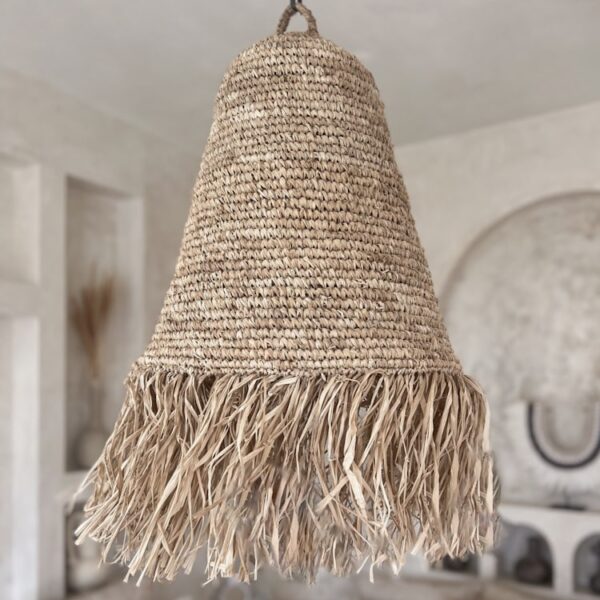 Boho Raffia Pendant with Fringe SEKAR | Textured Natural Light 80×45