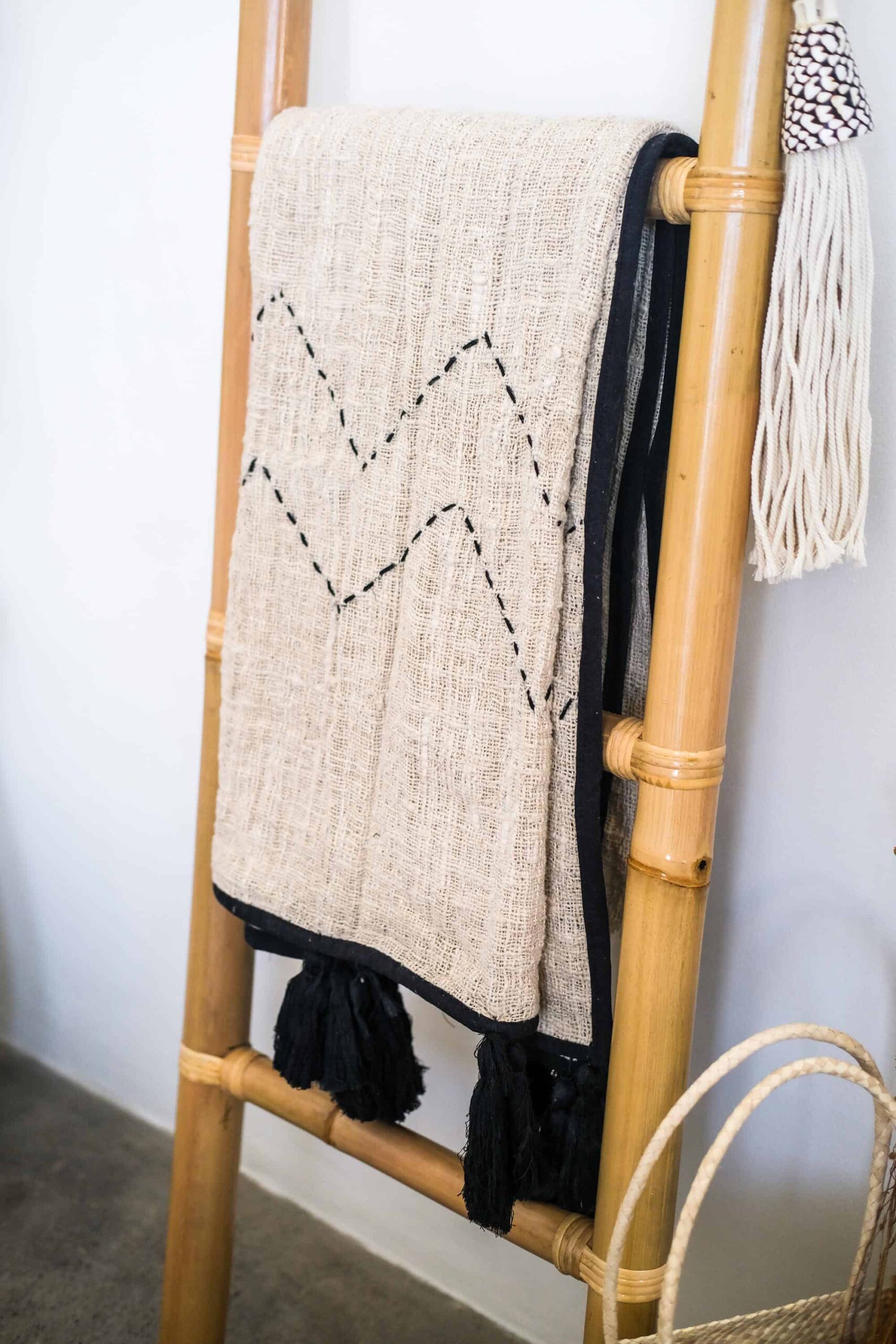 Use it in the bathroom for towels, in the bedroom for blankets or scarves, or in your living space to hang boho-style accessories. Its raw bamboo structure and minimalist design make it both functional and sculptural — a quiet statement of natural living.
