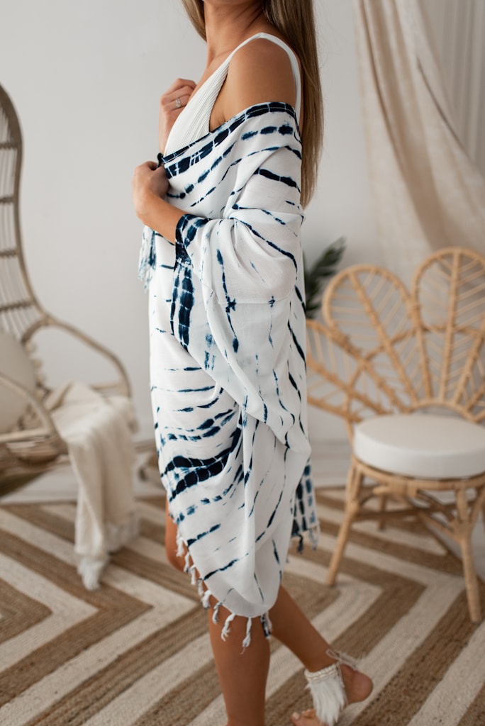 The Boho Beach Cover-Up LETI Navy is a breathable, lightweight boho kimono handcrafted in a small workshop near Canggu, Bali. Made from soft rayon fabric, it keeps you cool and protected from the sun while offering a stylish, effortless layer for beach days or tropical getaways. The navy-and-white color palette adds a touch of sophistication to your summer wardrobe.
