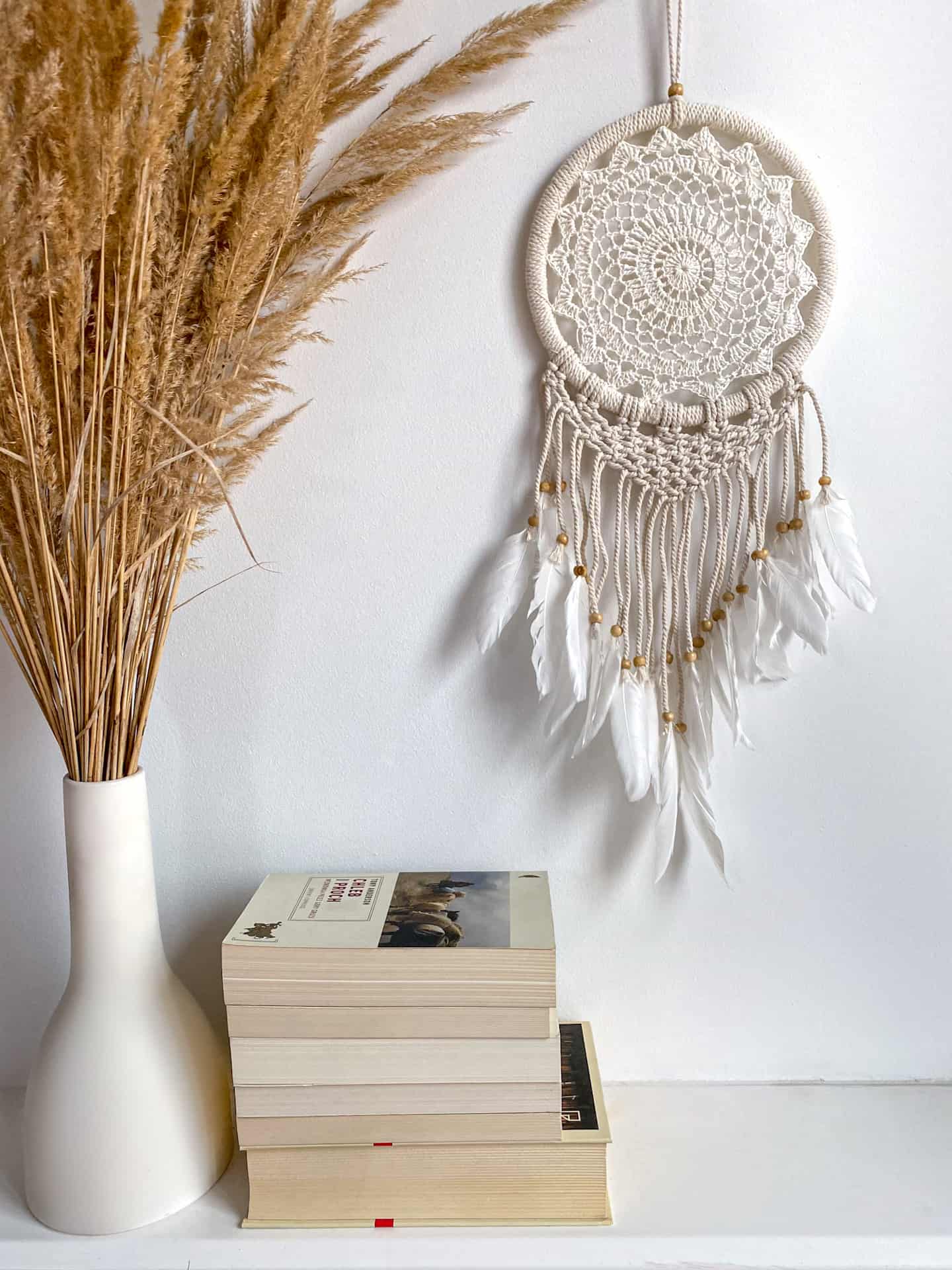 This macrame dreamcatcher blends perfectly with boho, natural, and coastal interiors — making it a beautiful gift or personal talisman for anyone who values meaning and handmade beauty.