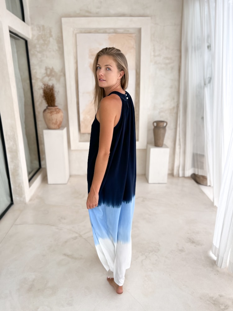 Breathe new life into your summer wardrobe with this stunning blue boho dress MANDIRI. The serene yet striking shade of blue brings a refreshing energy to your outfit, perfect for sun-soaked days and warm evenings. Designed with a loose, airy silhouette, this bohemian summer dress offers ultimate comfort while celebrating effortless style.
