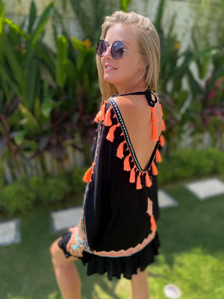 Let your style flow with the Boho Dress WAVE – a playful fringe mini dress handcrafted in Bali. Made from soft, lightweight rayon fabric, it feels gentle on the skin while giving your summer wardrobe a free-spirited twist. The boho-inspired fringes move beautifully with every step, making it perfect for beach days, festivals, or barefoot strolls along the coast.