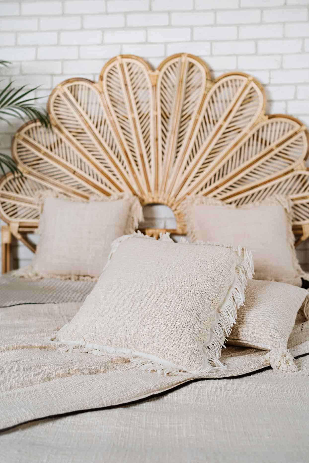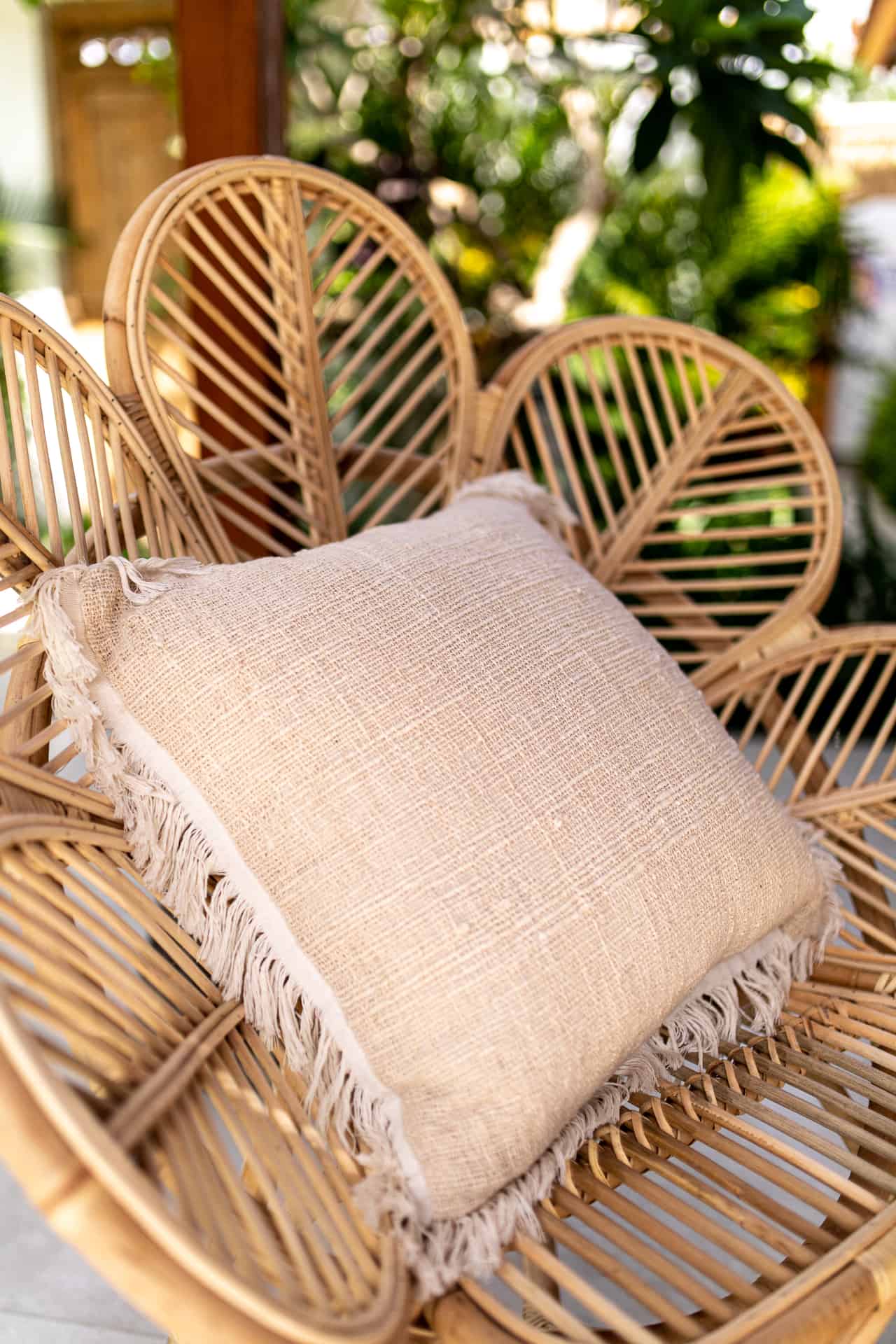 KOTAK is a handwoven boho cushion cover with bold texture and structured macrame pattern. Made from soft natural cotton and finished with delicate fringes, it’s perfect for adding warmth and rhythm to your sofa or bed. A beautiful handmade piece from Bali, ideal for earthy, relaxed interiors.