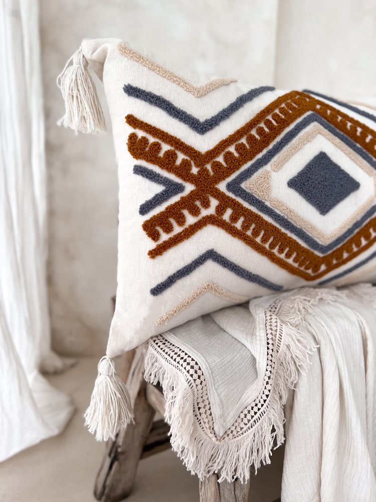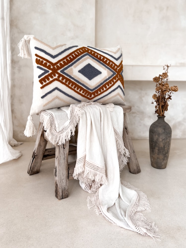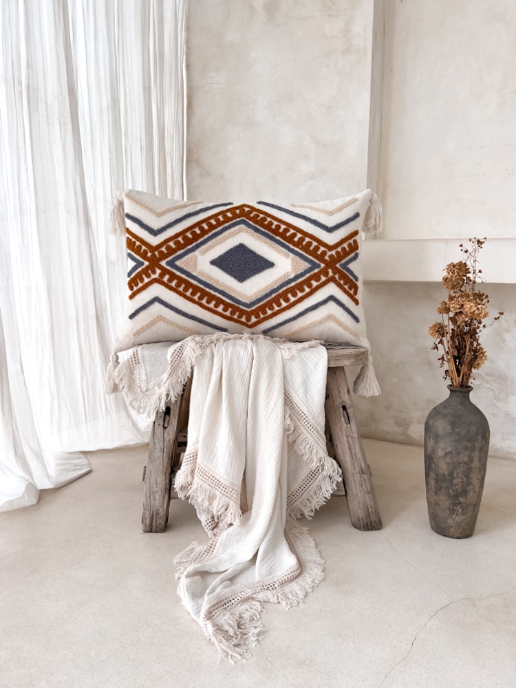 MELISA is all about laid-back elegance. This handcrafted cushion cover brings a bohemian softness to any space — ideal for layering with other cushions or throws. Made from natural cotton in Bali.