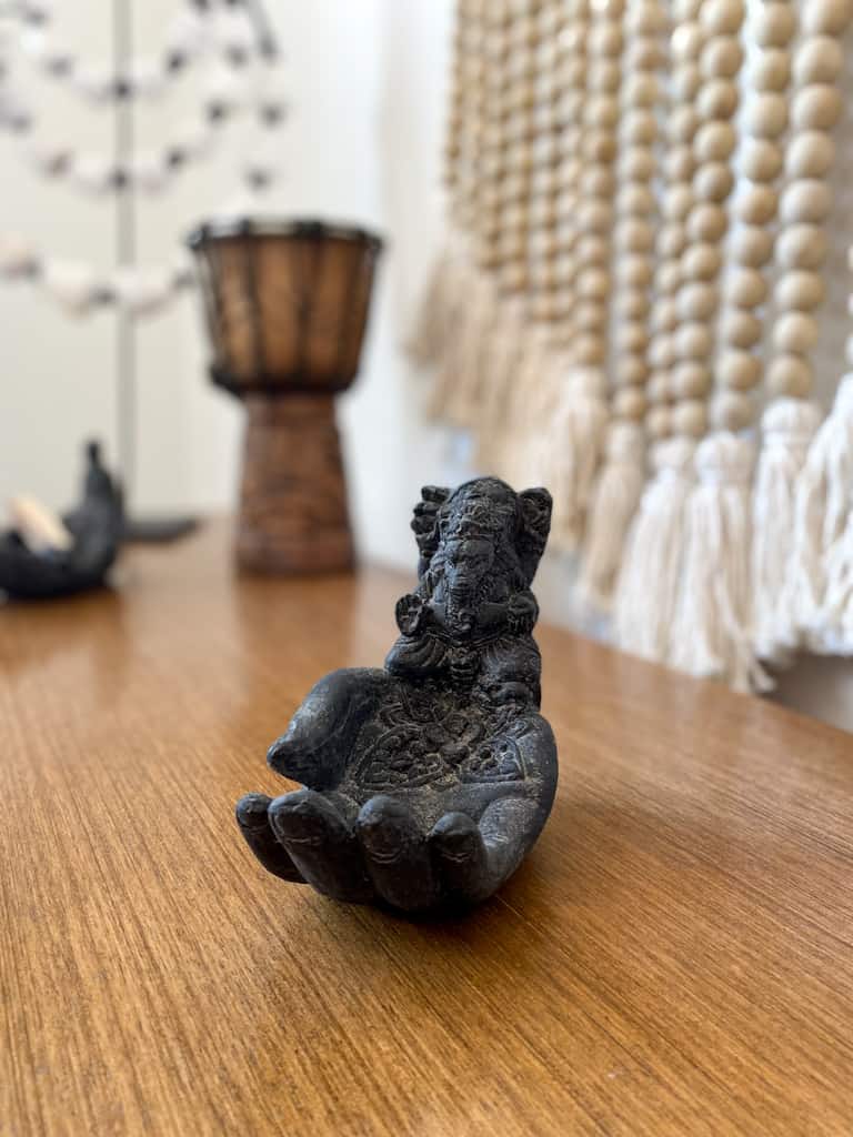 The GANESHA Graphite Incense Holder is a stunning piece inspired by Ganesha, the Hindu god of prosperity and remover of obstacles. Handcrafted in Bali, this incense holder is perfect for adding a touch of oriental elegance to your home. It can also be used to store jewelry or small objects.