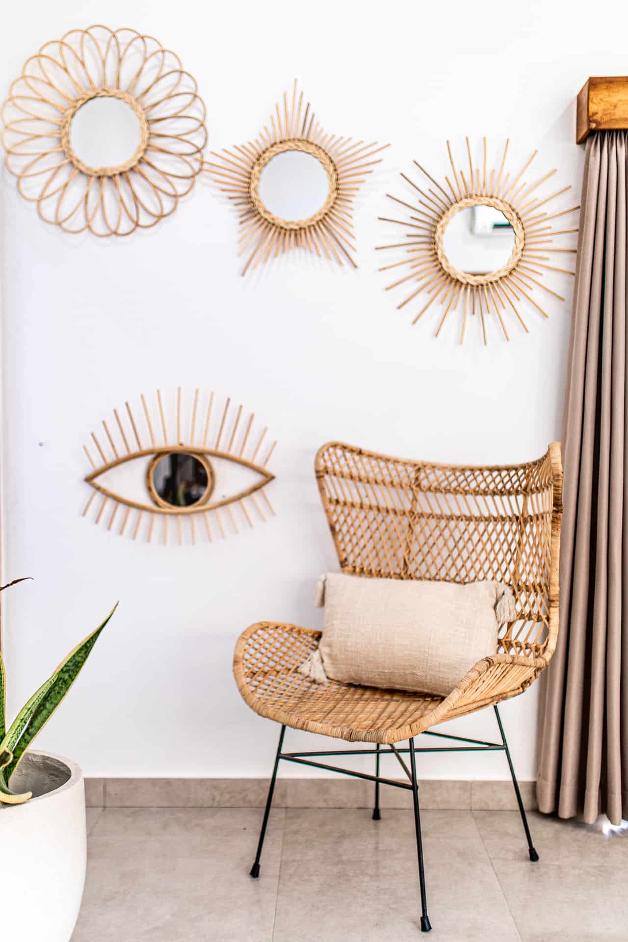 Want to mix and match? Discover our other rattan designs including eye, sun, and flower-shaped mirrors to complete your boho wall decor collection.