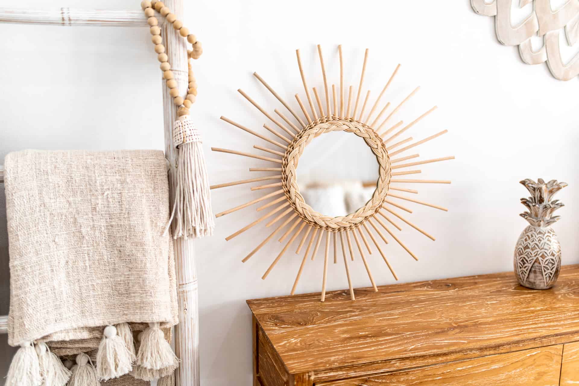 Crafted from dozens of rattan strands softened with steam, this boho mirror is shaped entirely by hand—each one is slightly different, making it a truly unique wall accent. Whether you place it above a console table, in a hallway, or on a gallery wall, it adds a glowing, organic touch to your home.