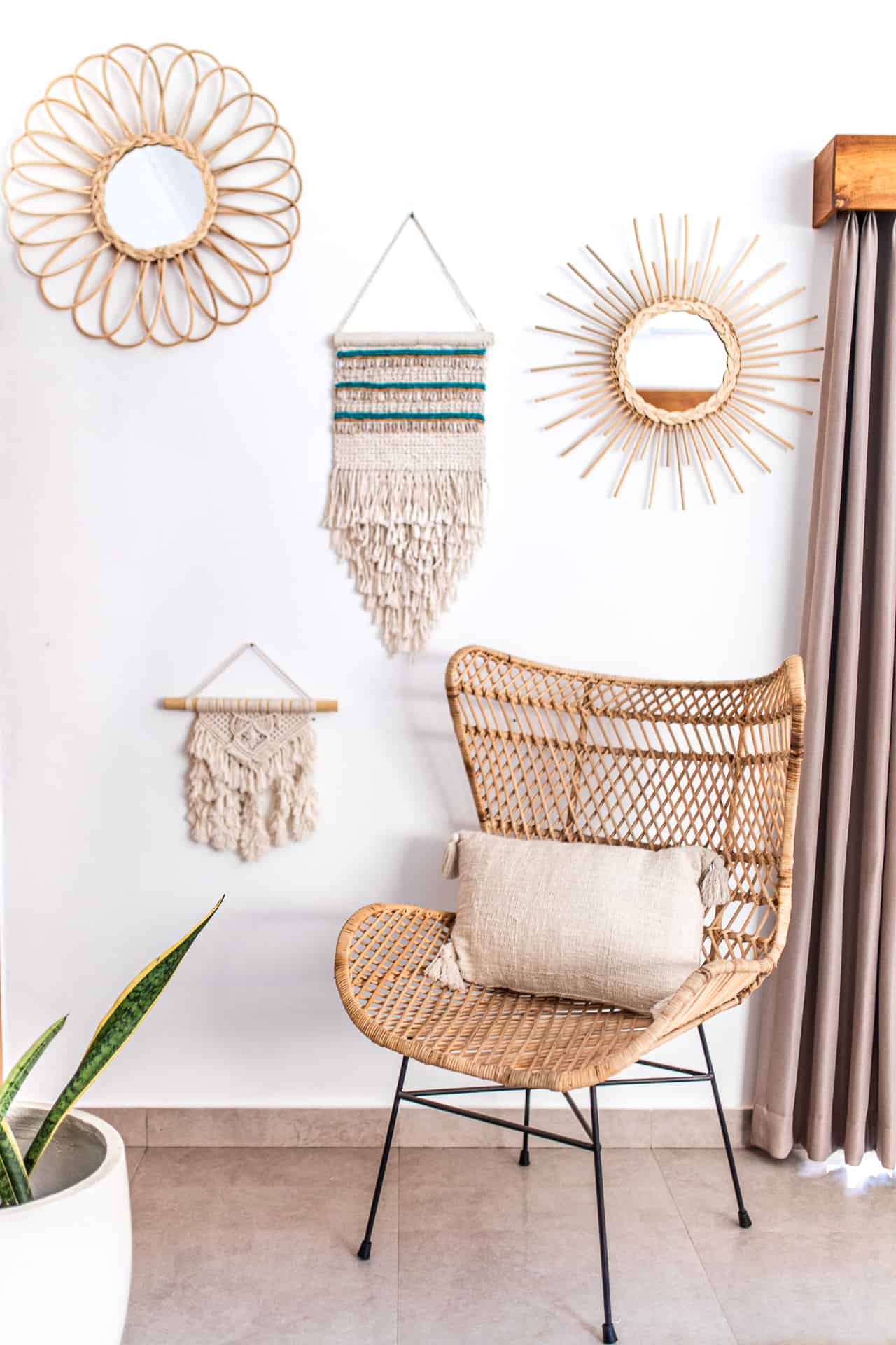 Looking for more shapes? This piece is also available in eye, star, and flower designs to mix and match with your boho rattan decor.
