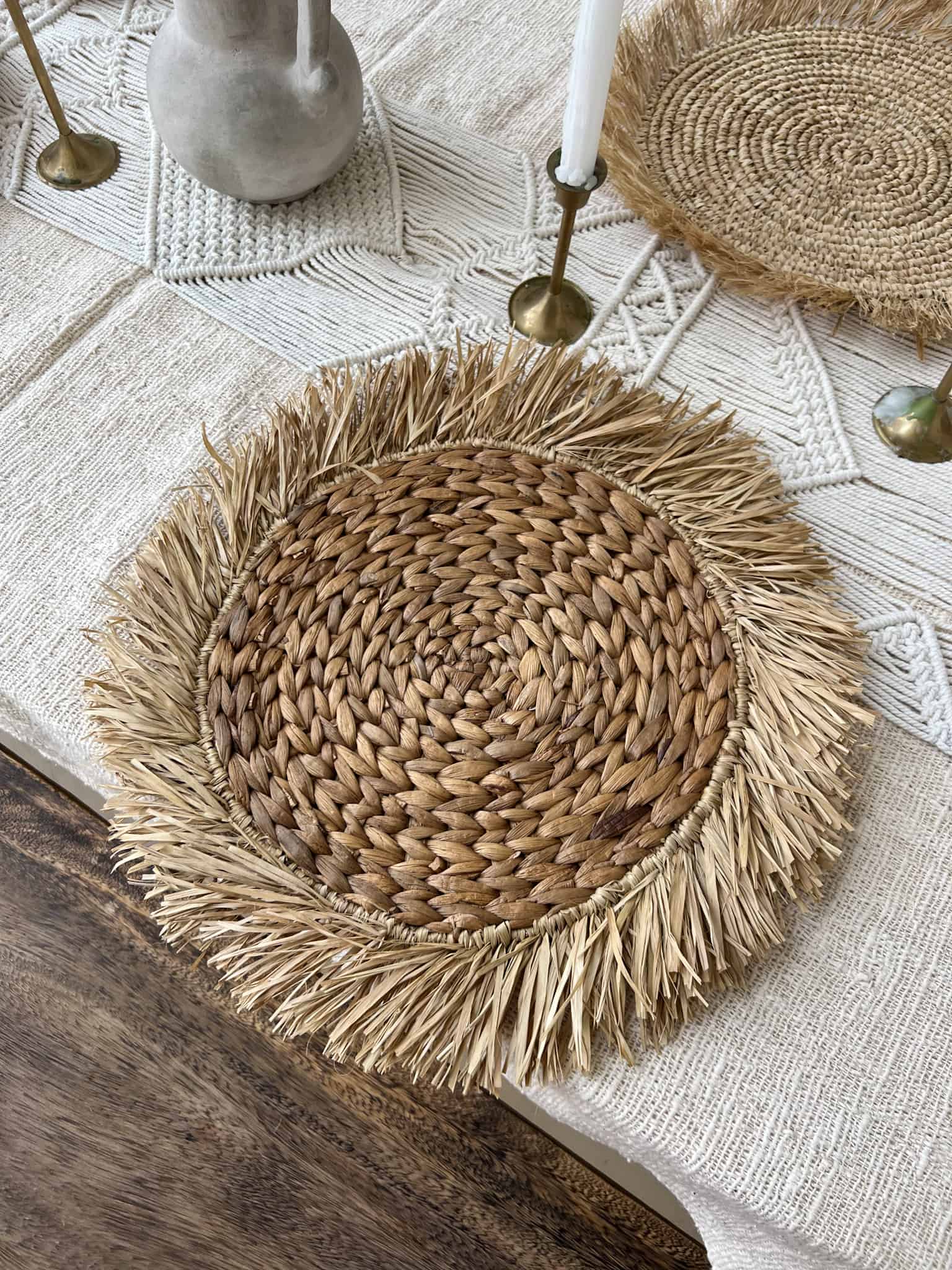 Our Boho Table Placemats are exceptional handcrafted pieces that will bring character and style to your table. Made from natural materials, like banana leaves, they are durable and long-lasting. We offer round table placemats with delicate fringes that are perfect for any boho-themed space.