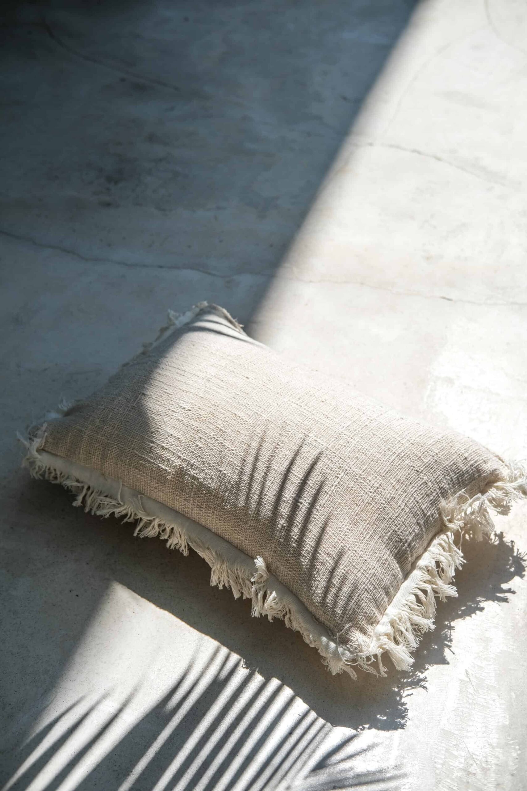 PELUK means “hug” – and this elongated cushion cover does just that. With its handwoven texture and relaxed look, it’s ideal for layering on a bed or bench. A soft and grounding piece for those who love cozy, boho-inspired interiors.