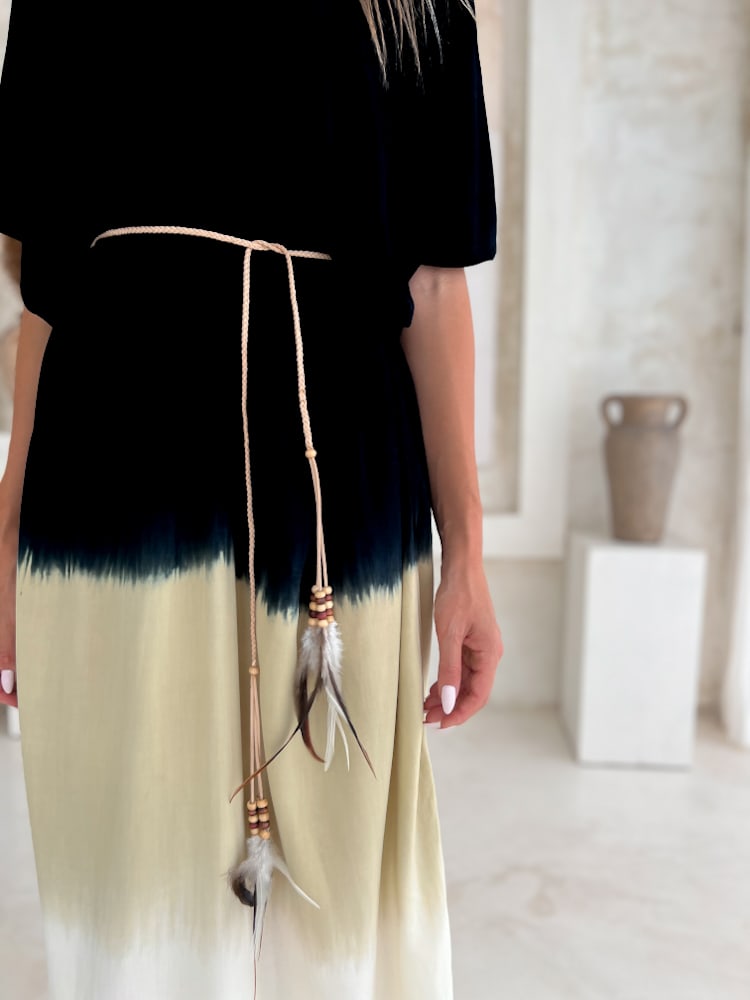 Note: The braided belt shown in the photos is not included. You can get it separately here: BOHO Braided Feather Belt.
