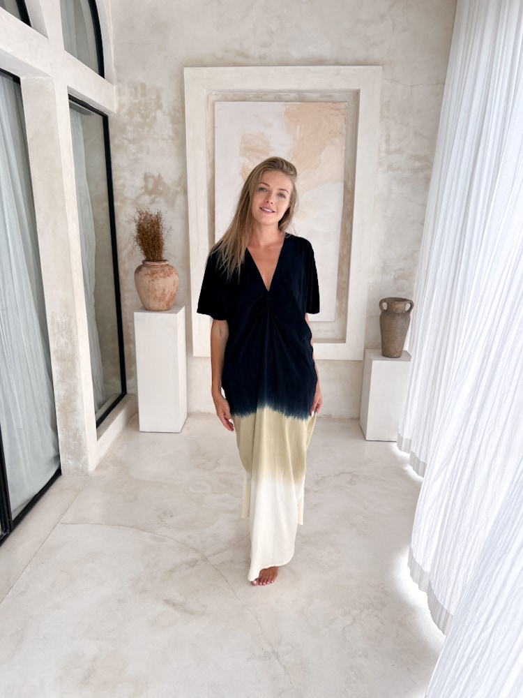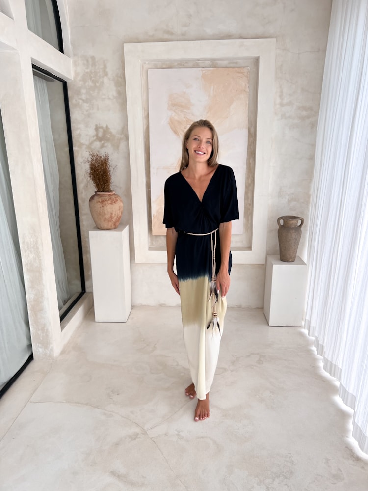 Simple, flowing, and effortlessly stylish — the boho yoga dress in black is a go-to piece for women who want comfort without compromising on elegance. Handmade in Bali from soft rayon, this rayon maxi dress moves with you, making it perfect for yoga practice, a barefoot walk on the beach, or lounging in relaxed summer style.