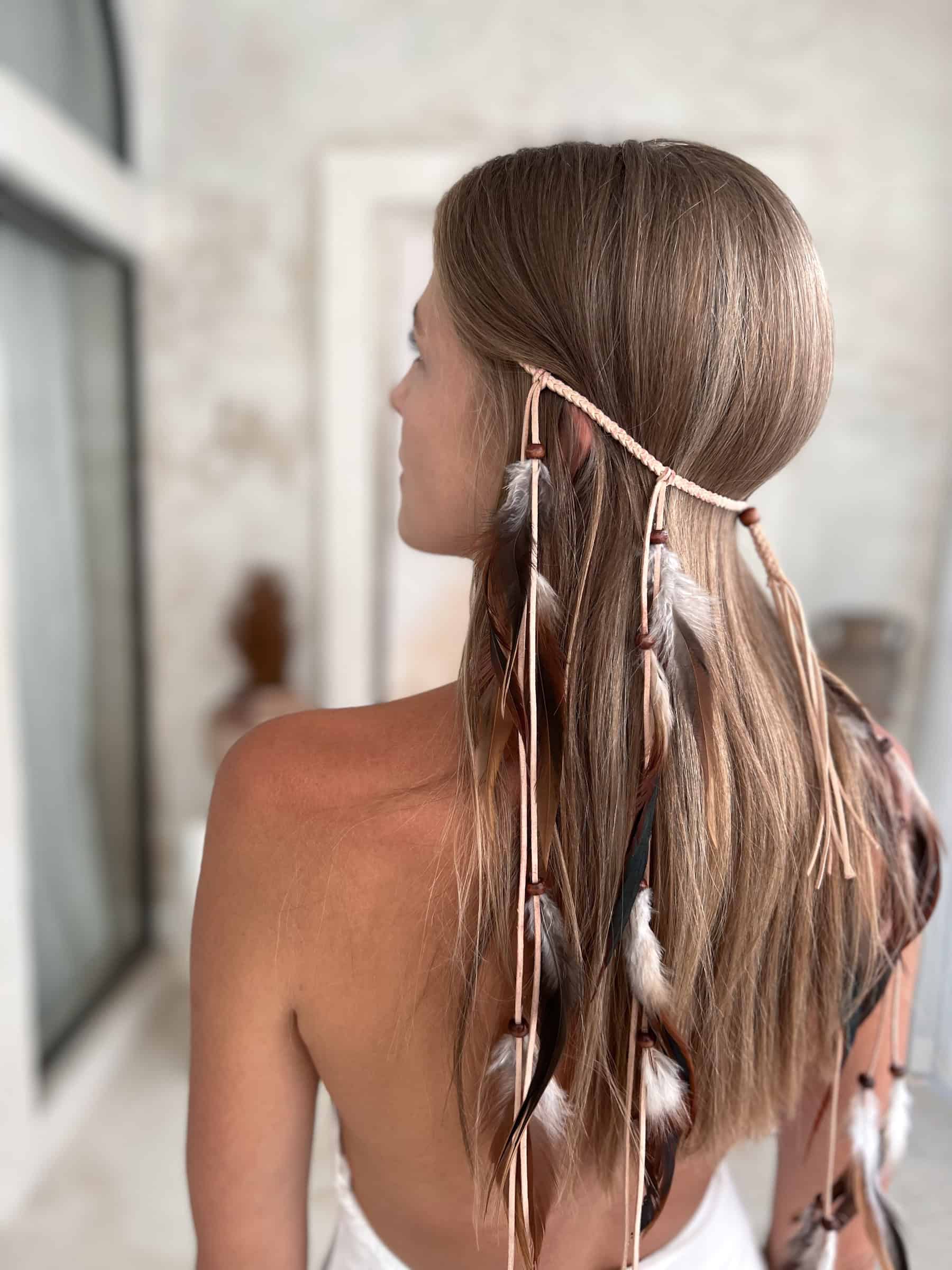 Brown Feather Hairband – Long Boho Style