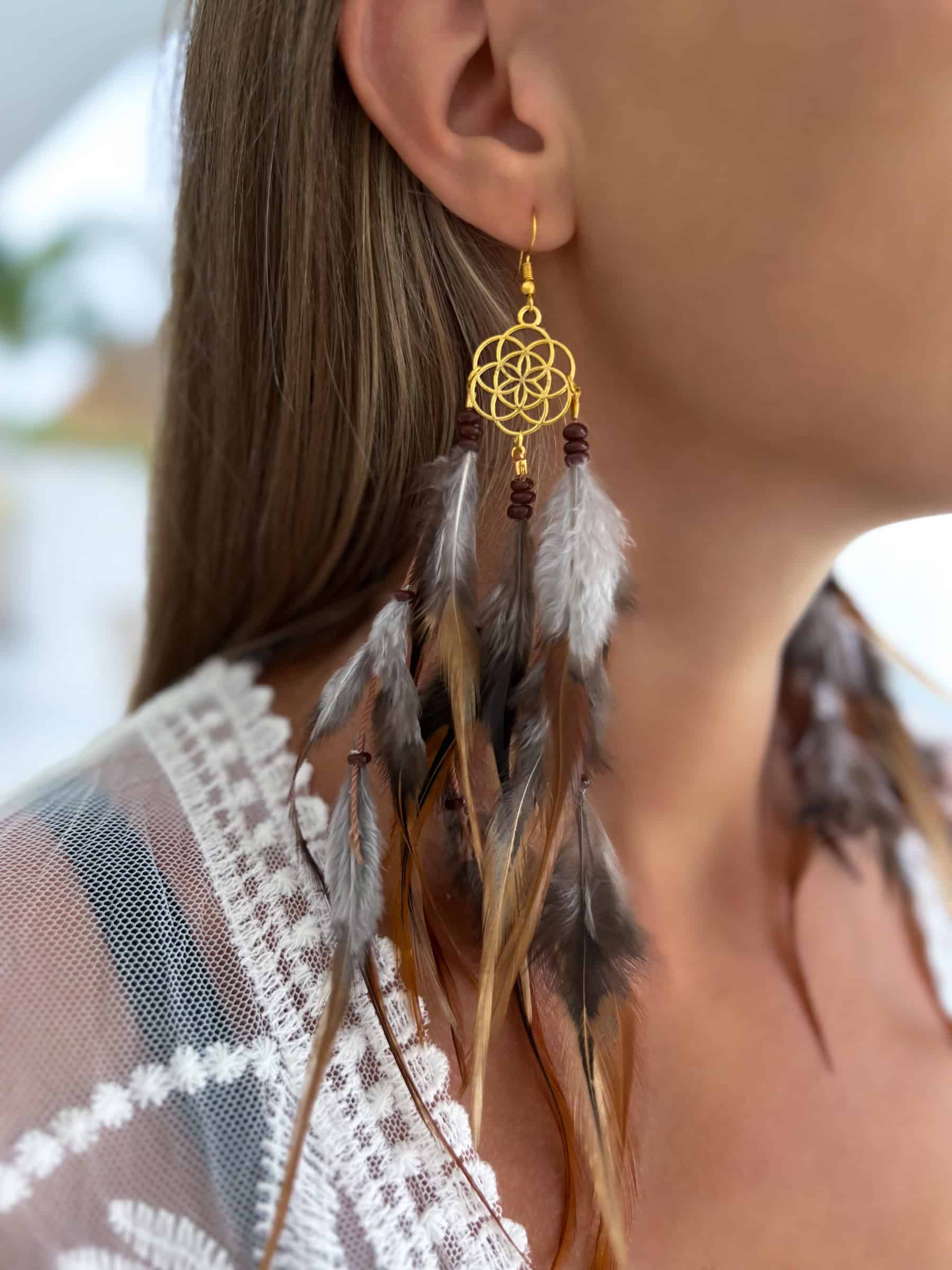 Brown-Gold Feather Earrings – MIA Luxe Boho Look