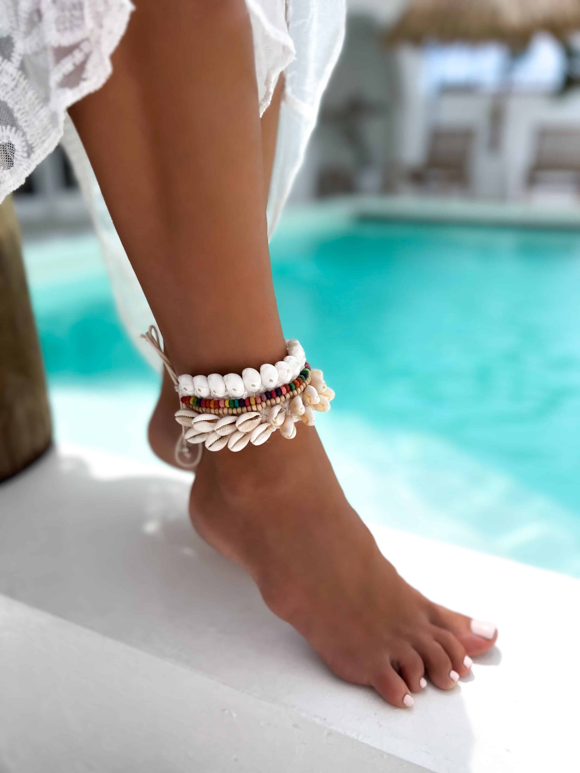 Colorful ETNO Kauri Shell Anklet – Handmade Festival Piece