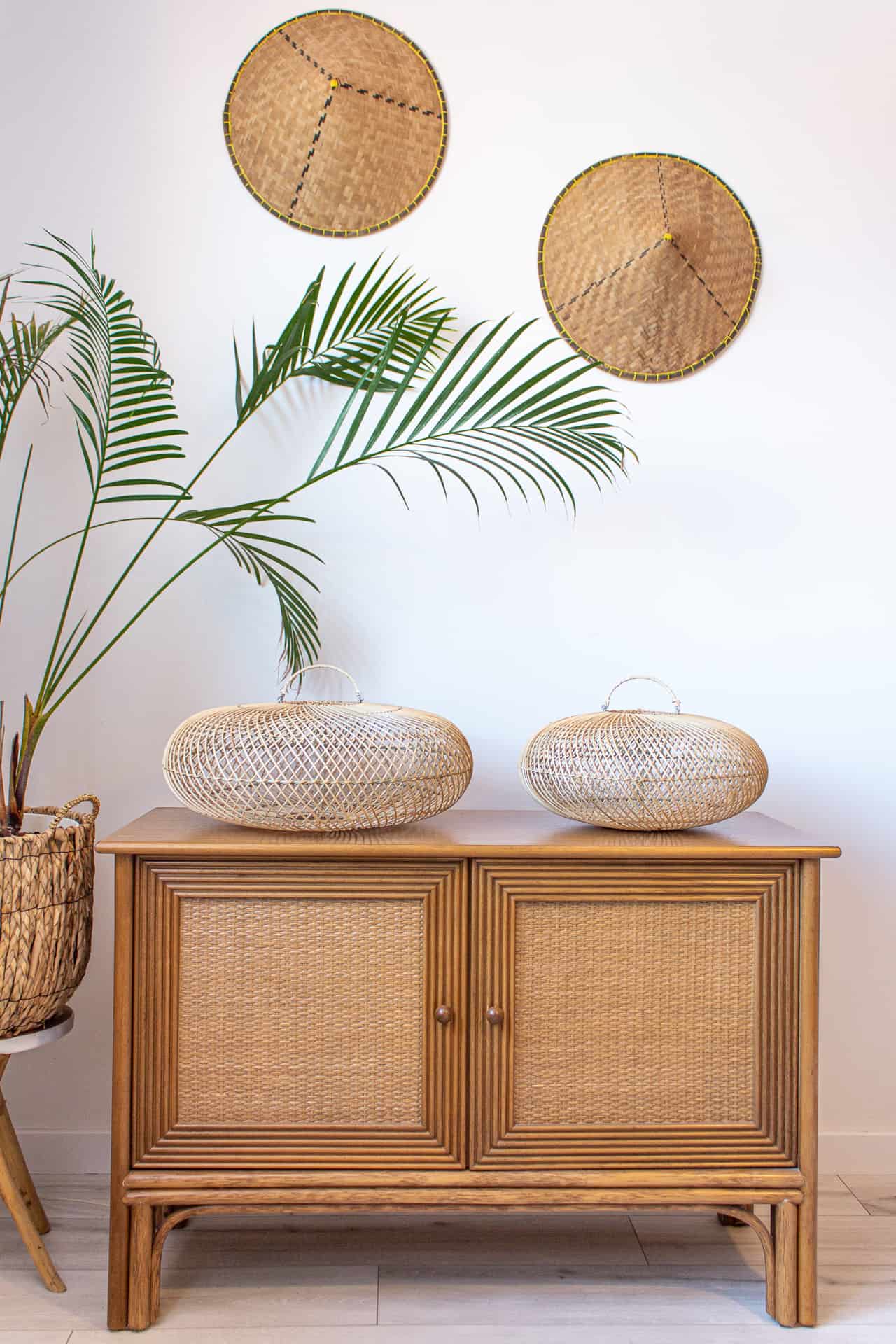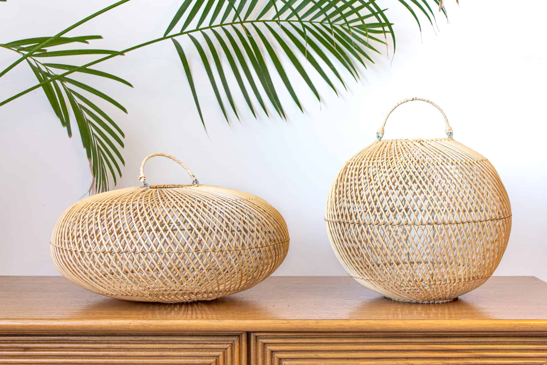 Flat Rattan Pendant Lamp UFO M | Woven Boho Light Fixture 40×20