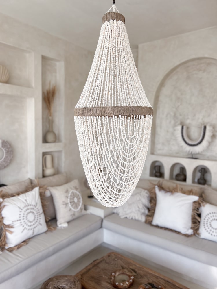 The Handcrafted Shell Chandelier brings elegance and natural beauty together. This handmade shell chandelier is ideal for interiors that embrace soft textures and beach-inspired tones. Use it as a natural coastal light in your dining room, entryway, or bedroom to set a relaxed mood.