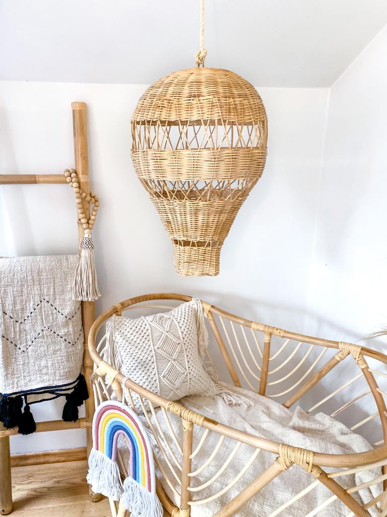 Its airy, textured design complements spaces with balloon-shaped lighting and works beautifully in living rooms, bedrooms, or even covered terraces. Ideal for anyone who loves handwoven lamp and subtle natural rattan decor accents.