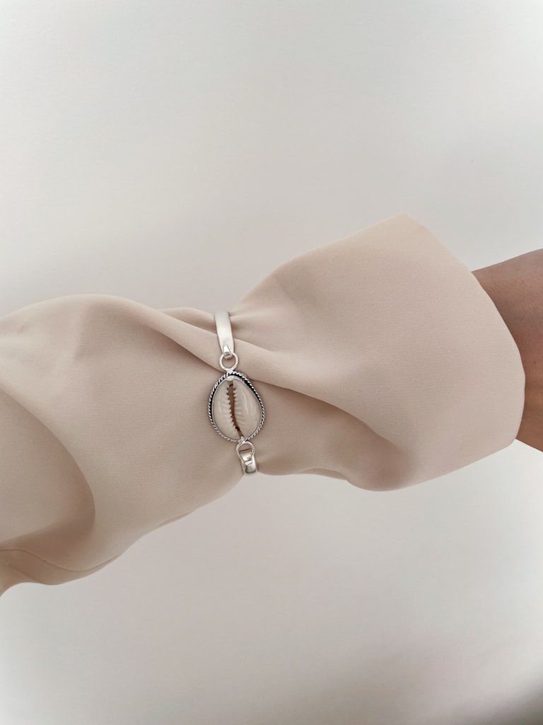 Delicate, organic, and made with love — this handmade kauri shell bracelet is a timeless nod to ocean life and island simplicity. Inspired by the sea breeze and Bali’s barefoot rhythm, it features a natural kauri shell centered on a minimalistic brass band, giving it a subtle beachy glow that works with everything from linen to lace.