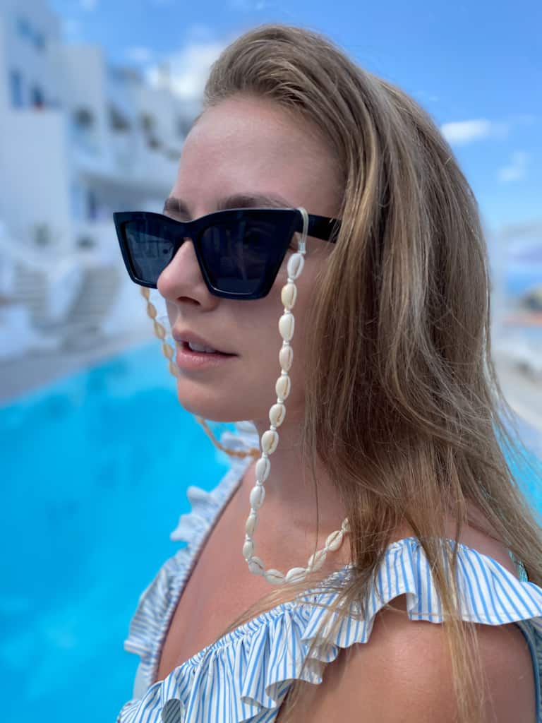Fitted with soft rubber loops for easy attachment, this boho-style glasses chain doubles as a shell necklace when worn without glasses. Lightweight and full of island spirit, it’s the perfect fusion of function and style for sunny days and beyond.