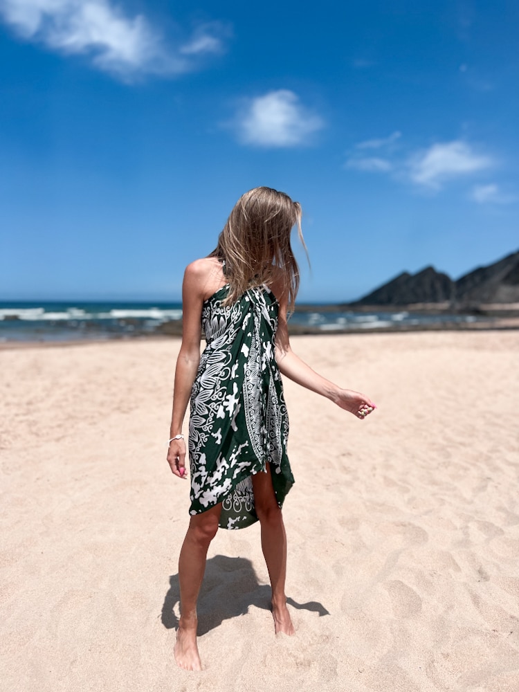 The KOMODO sarong brings a laid-back island vibe wherever you go. Crafted from smooth, breathable rayon, it’s soft against the skin and catches the breeze just right. Whether you wrap it low around the hips, tie it as a halter dress, or drape it over your shoulders, this pareo adapts to your plans with ease.