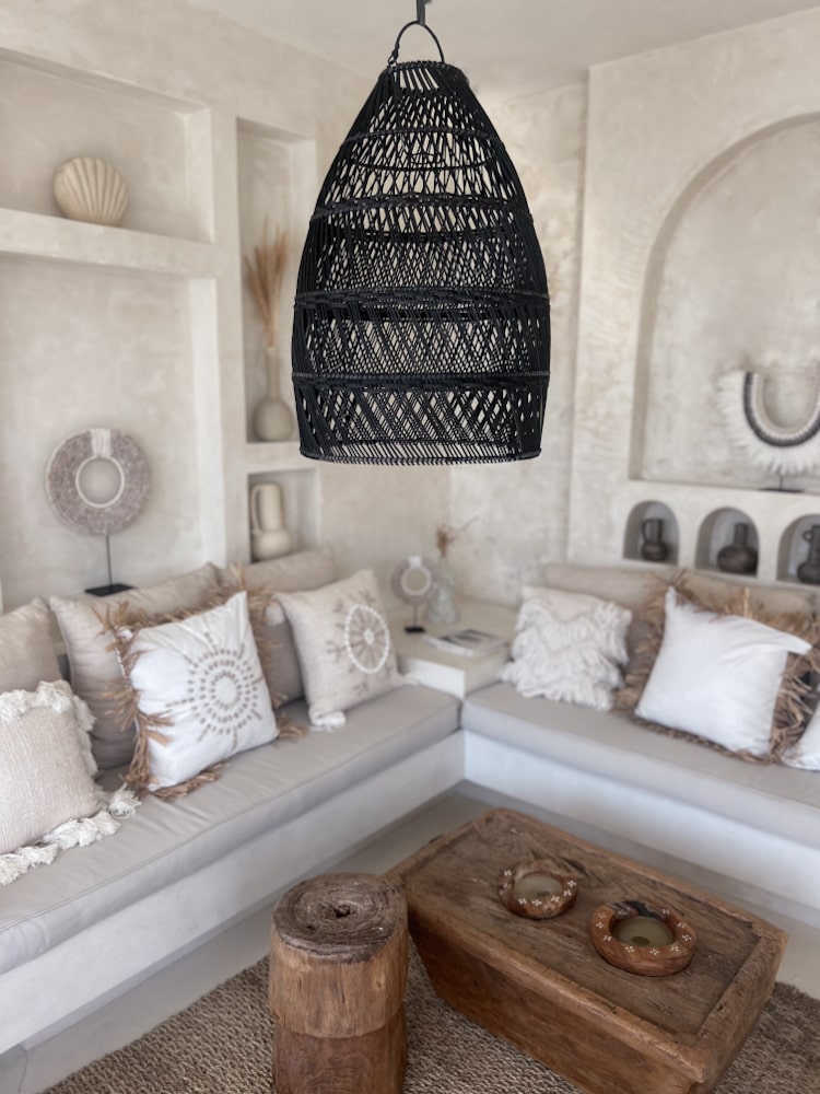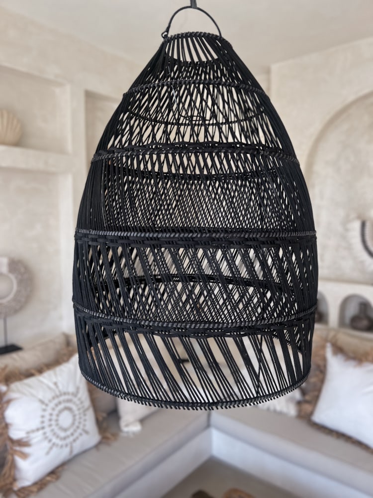 Medium Black Rattan Pendant Light SUREN M | Handwoven Boho Light 40×55