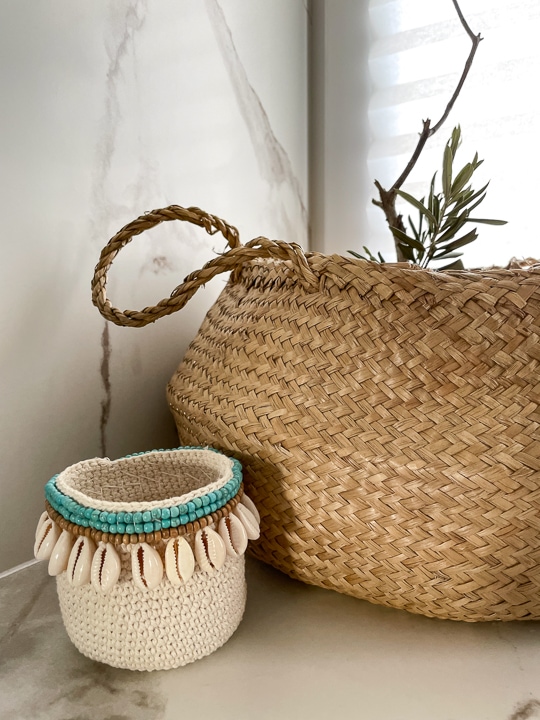 Looking for more to fill it with? Explore our handcrafted boho jewelry collection for pieces that match perfectly. This versatile basket also doubles as a decorative cover for a small plant pot — adding a touch of island soul to any corner of your home.