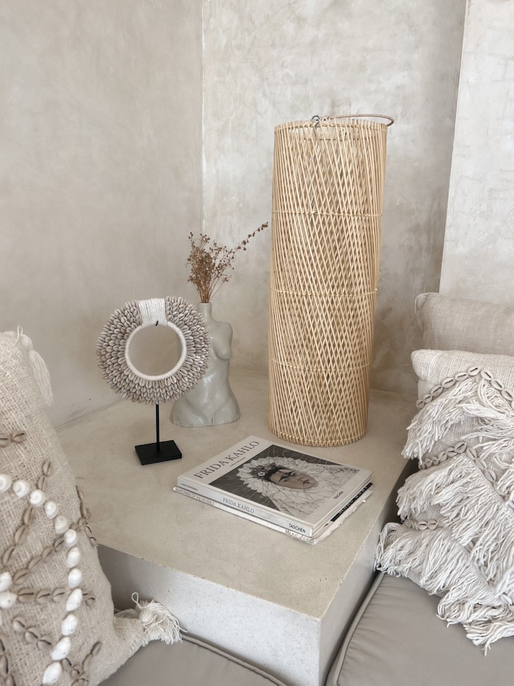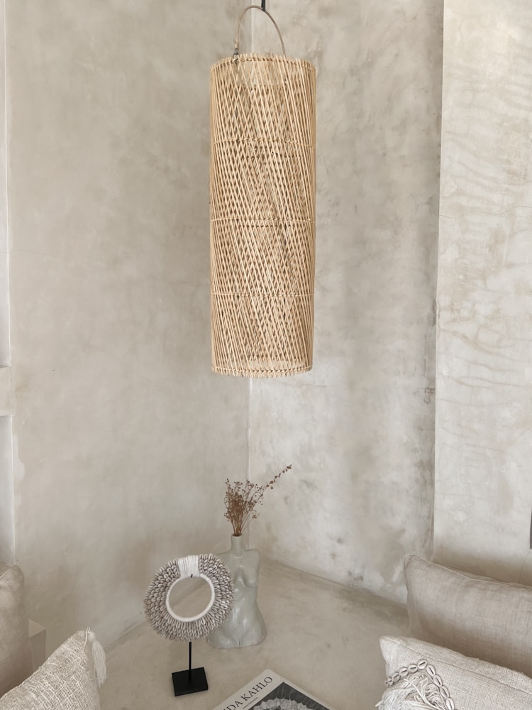 The Narrow Rattan Pendant Light TERANG is a slim, handwoven ceiling lamp designed for elegance in vertical spaces. Its tall, cylindrical silhouette creates a beautiful visual line that draws the eye upward, making it ideal for staircases, corners, or areas with high ceilings.