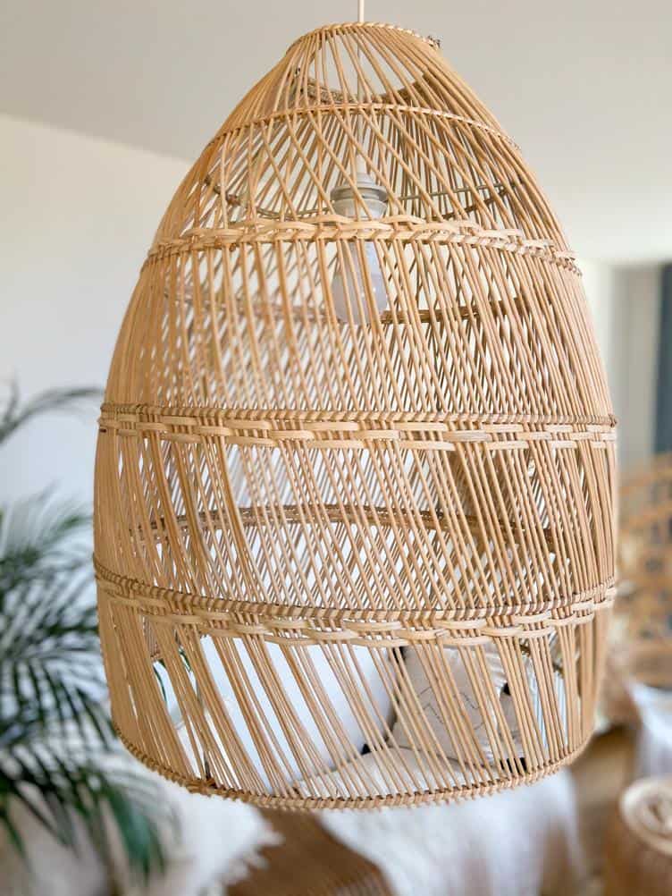 The SUREN L is a natural rattan ceiling lamp with soft curves and handcrafted character. Perfect for large rooms, its woven shade and earthy tones make it an ideal boho pendant light. Whether placed over a dining table or in a spacious living room, it brings Bali-inspired lighting and a calm, relaxed glow to your home.