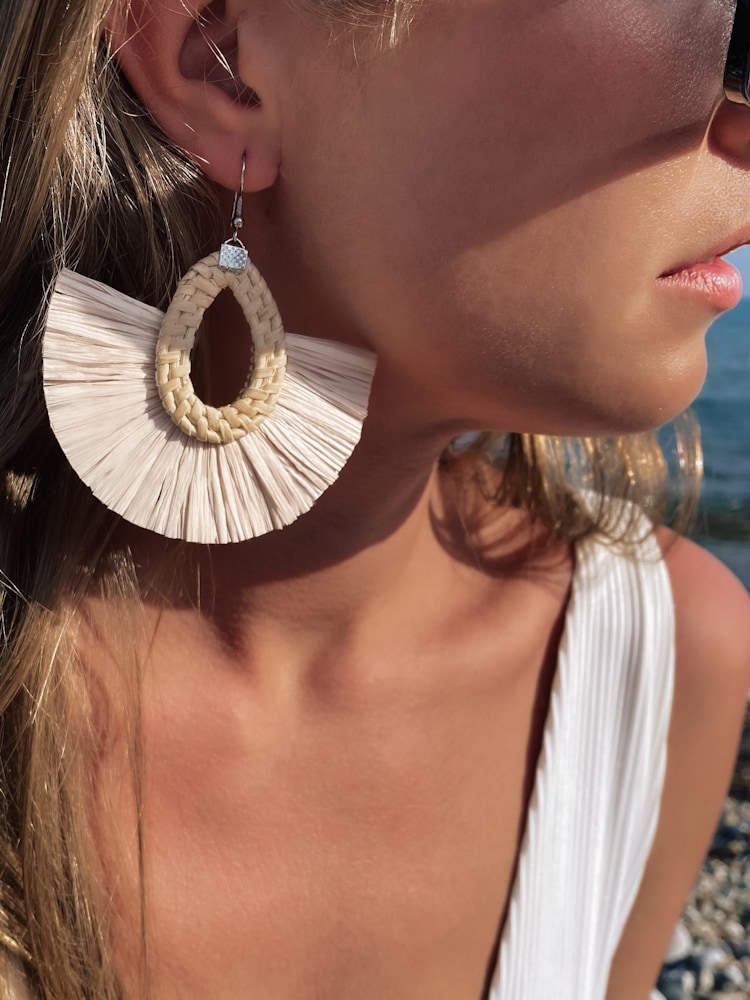Their creamy color and woven texture are perfect for summer looks — whether you’re dressing up for a coastal getaway or adding a natural accent to your everyday wear. A statement piece for anyone who loves ethnic-inspired jewelry with a soft bohemian soul.