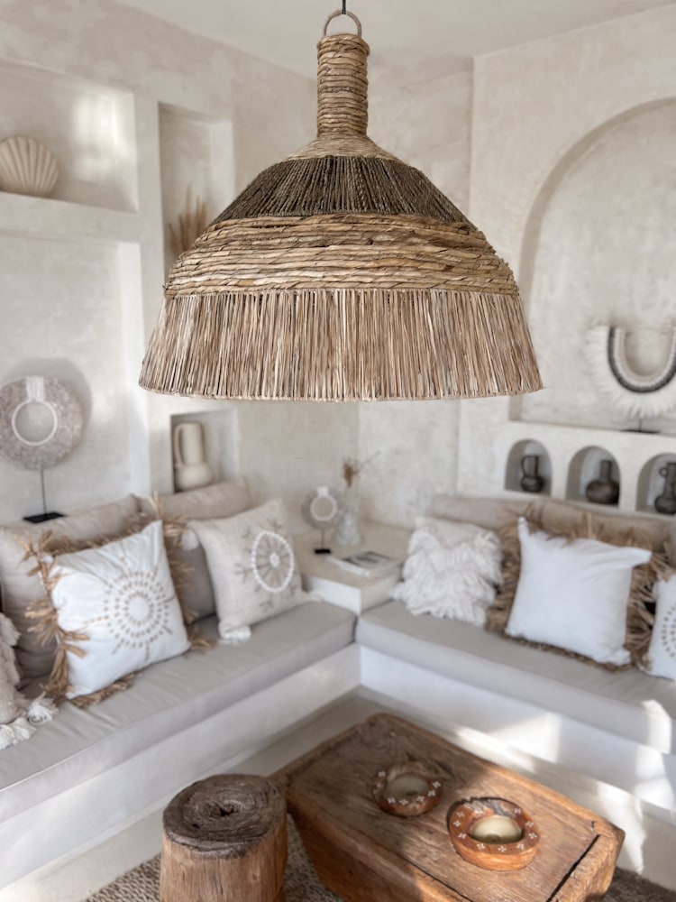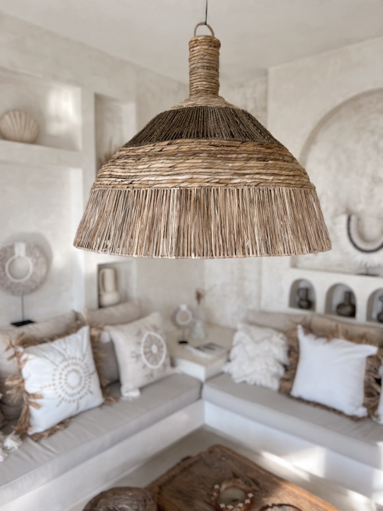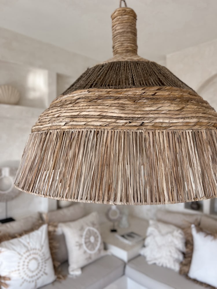 The Oversized Natural Rattan Ceiling Light LIAM is a true bohemian centerpiece. Handwoven in Bali, this rustic pendant lamp combines the warmth of natural wicker with a bold silhouette that elevates any interior.