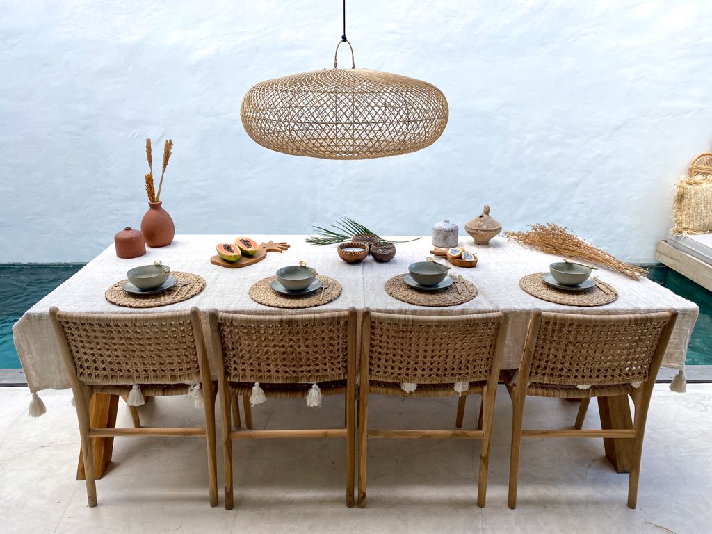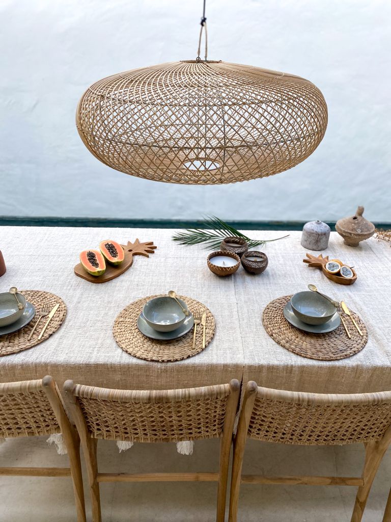 The Extra Large Flat Rattan Pendant Light is a bold, handcrafted statement piece that effortlessly blends natural charm with modern design. Woven by artisans in Bali, its wide, shallow shape makes it a perfect choice for those who love sculptural lighting with organic texture.