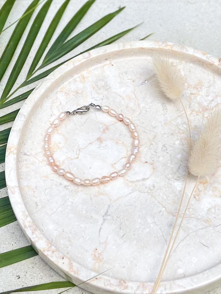 Add a soft romantic glow to your look with this pink pearl jewelry set, featuring a handmade bracelet and necklace crafted on the island of Bali. Created with genuine freshwater pearls, each piece reflects natural beauty with its unique shape and delicate color.