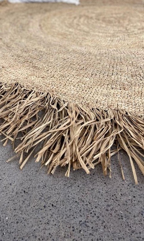 This handcrafted raffia rug in a square shape brings understated elegance and natural texture into any space. Woven by hand from palm fibers on the island of Bali, it’s a beautiful example of how simple materials can create a strong emotional impact. The dense weave and generous size make it a practical choice, while the fringed edges give this straw carpet its relaxed, organic charm. Perfect as a centerpiece or layering piece in living rooms or bedrooms, this natural mat warms up even the most modern interiors. More than just a boho rug, it’s a tribute to craftsmanship and the slow beauty of handmade design. Add this Bali rug to your home and embrace the soul of the island.