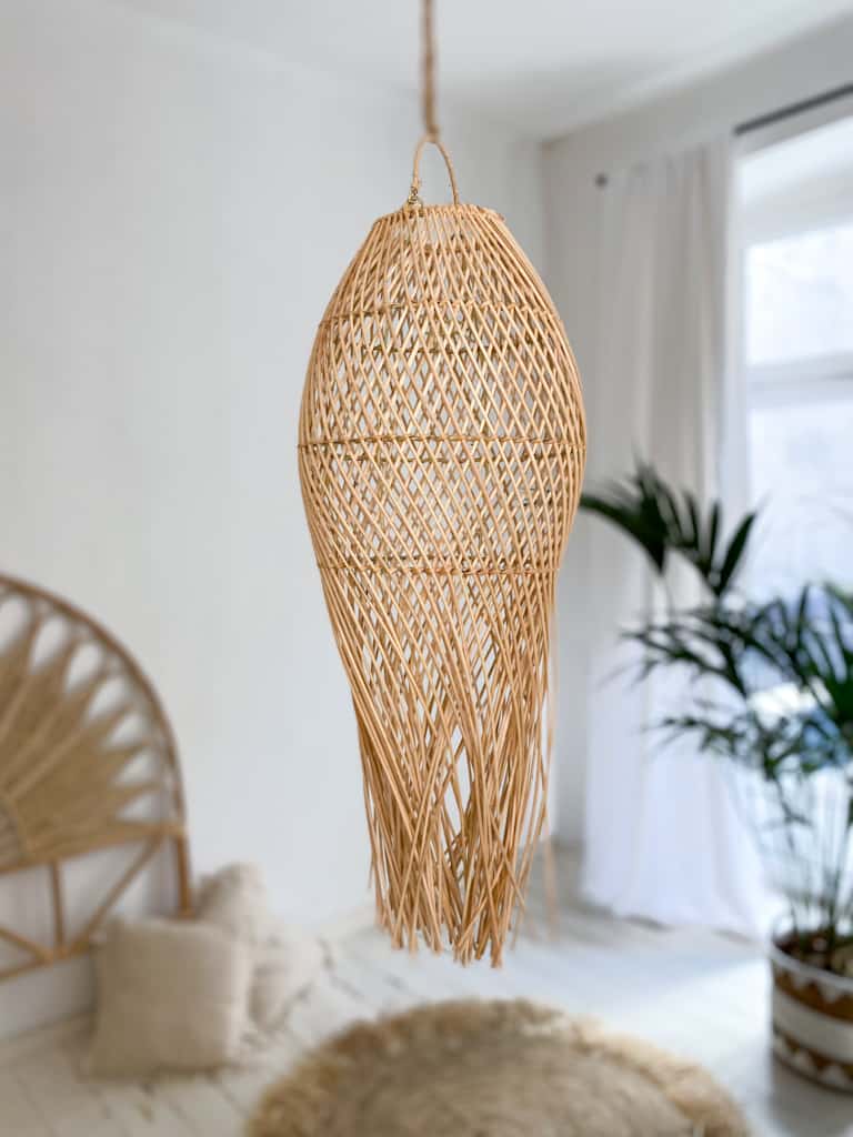 Rattan Pendant Light with Fringe LALA MINI | Small Boho Hanging Lamp 25×60