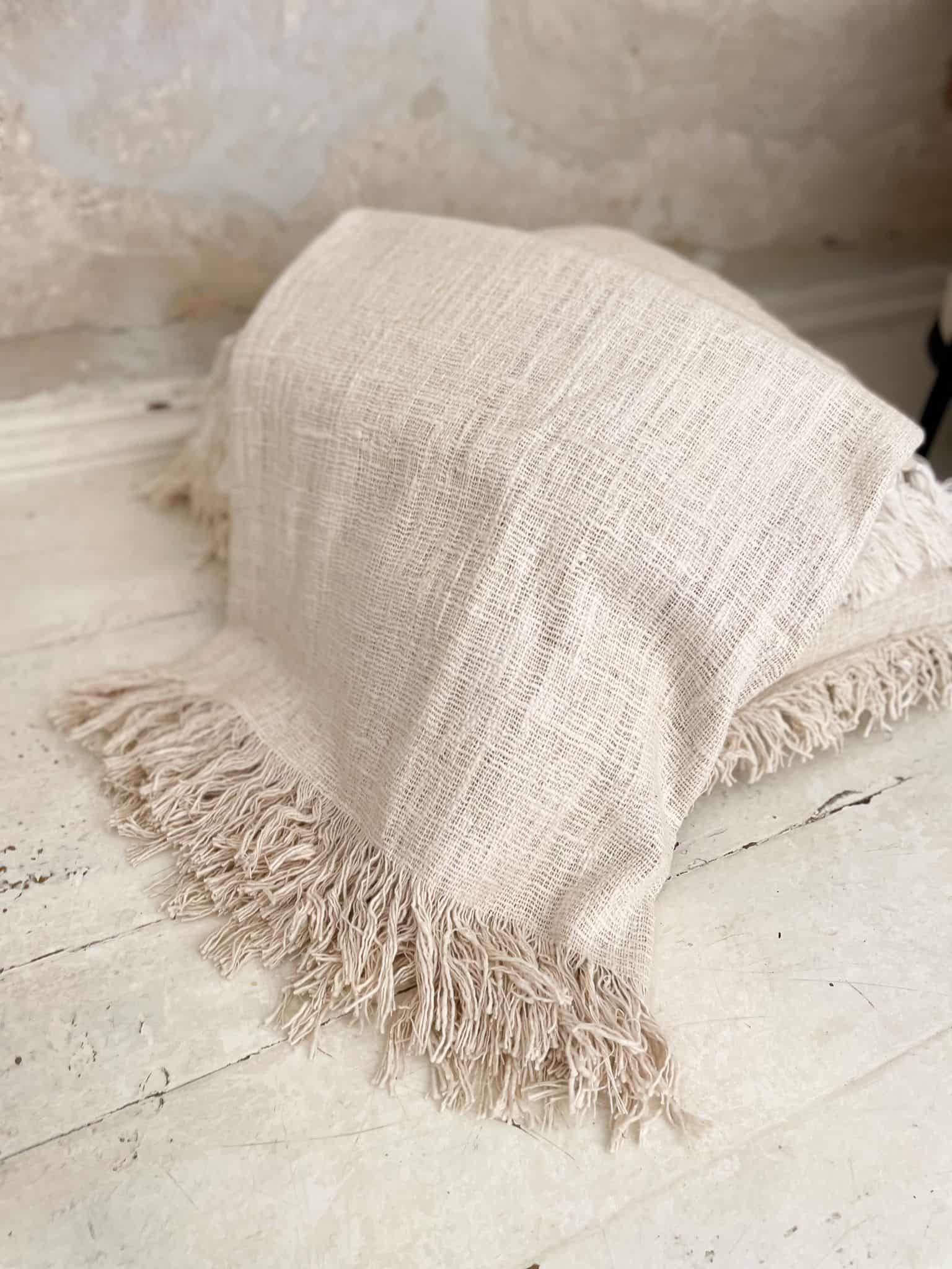 Raw Cotton Throw Blanket Boho Style LAMPU