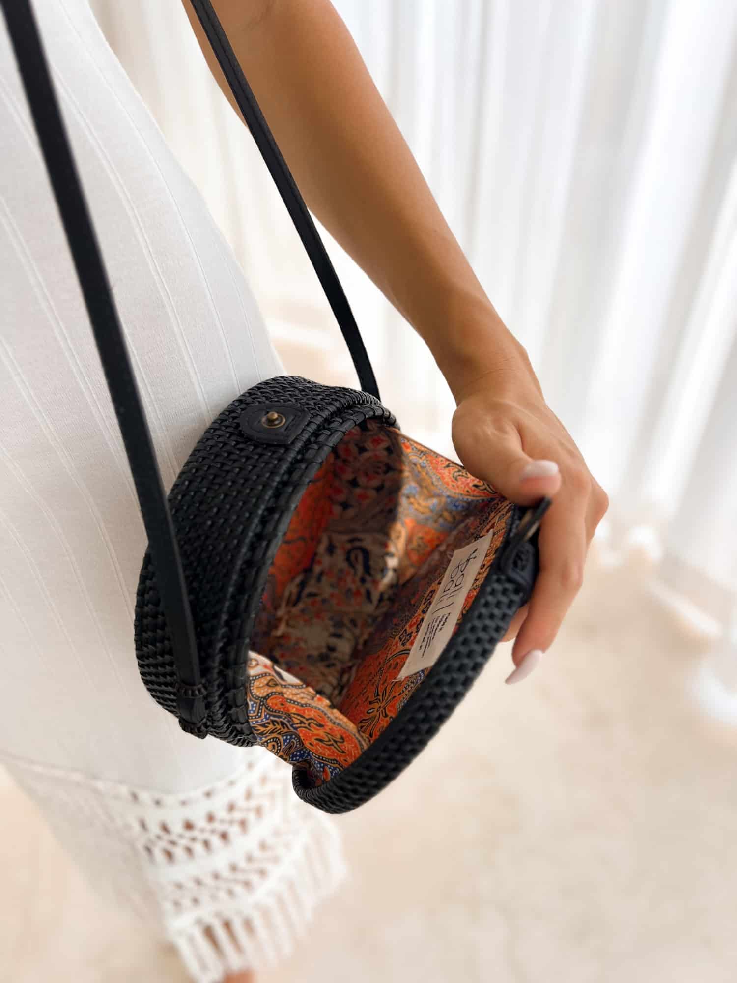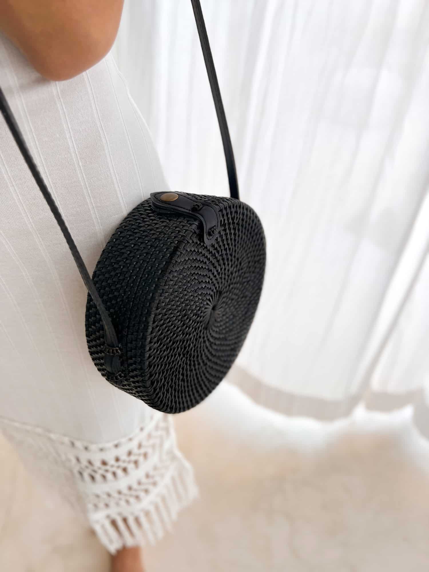 This round rattan bag in classic black is a beautiful blend of tradition and modern boho style. Handwoven on the island of Bali from natural rattan, this eco-friendly handbag is lightweight, durable, and full of character. The ATE BLACK design adds an elegant, minimal touch to any outfit, making it perfect for both elevated occasions and relaxed summer days.