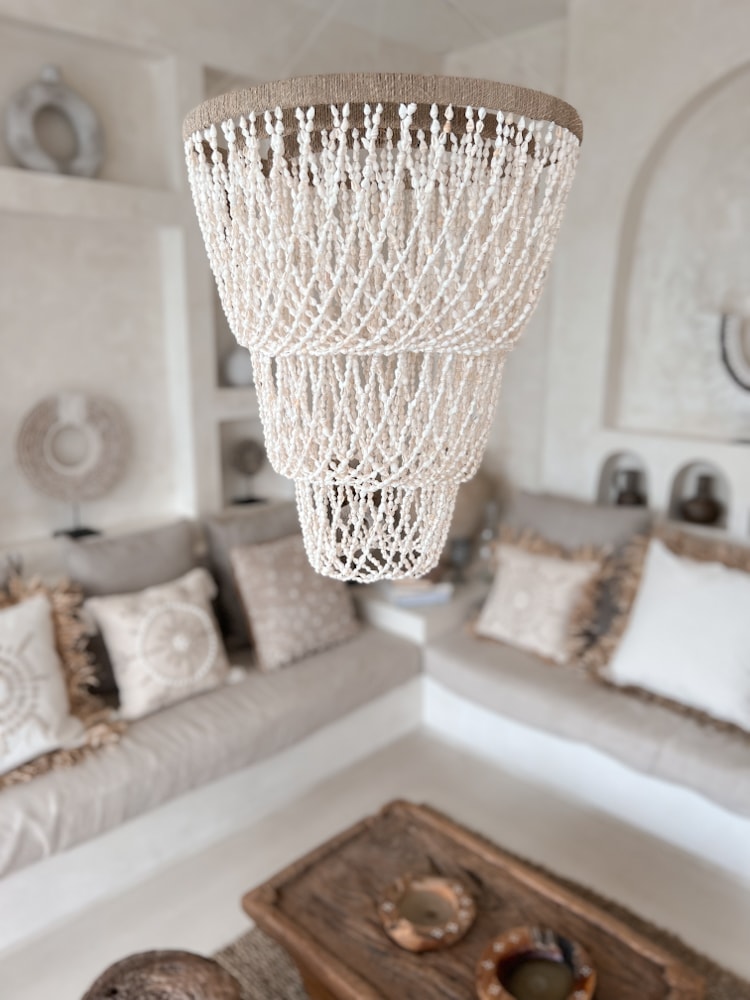 The Shell Chandelier NATI is a coastal-inspired masterpiece. Made with real sea shells and hand-assembled in Bali, it brings sound, shimmer, and softness into your room — like a gentle ocean breeze turned into light.