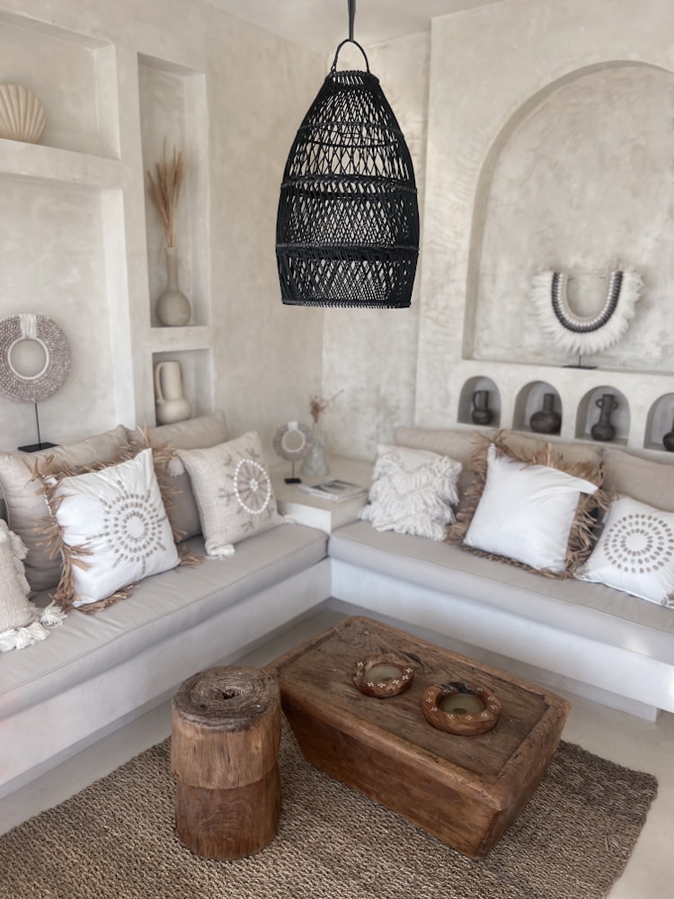 The Small Black Rattan Ceiling Lamp SUREN is designed for minimalists who still love a touch of handmade charm. Its compact size makes it ideal for hallways, bathrooms, or clustered lighting setups.