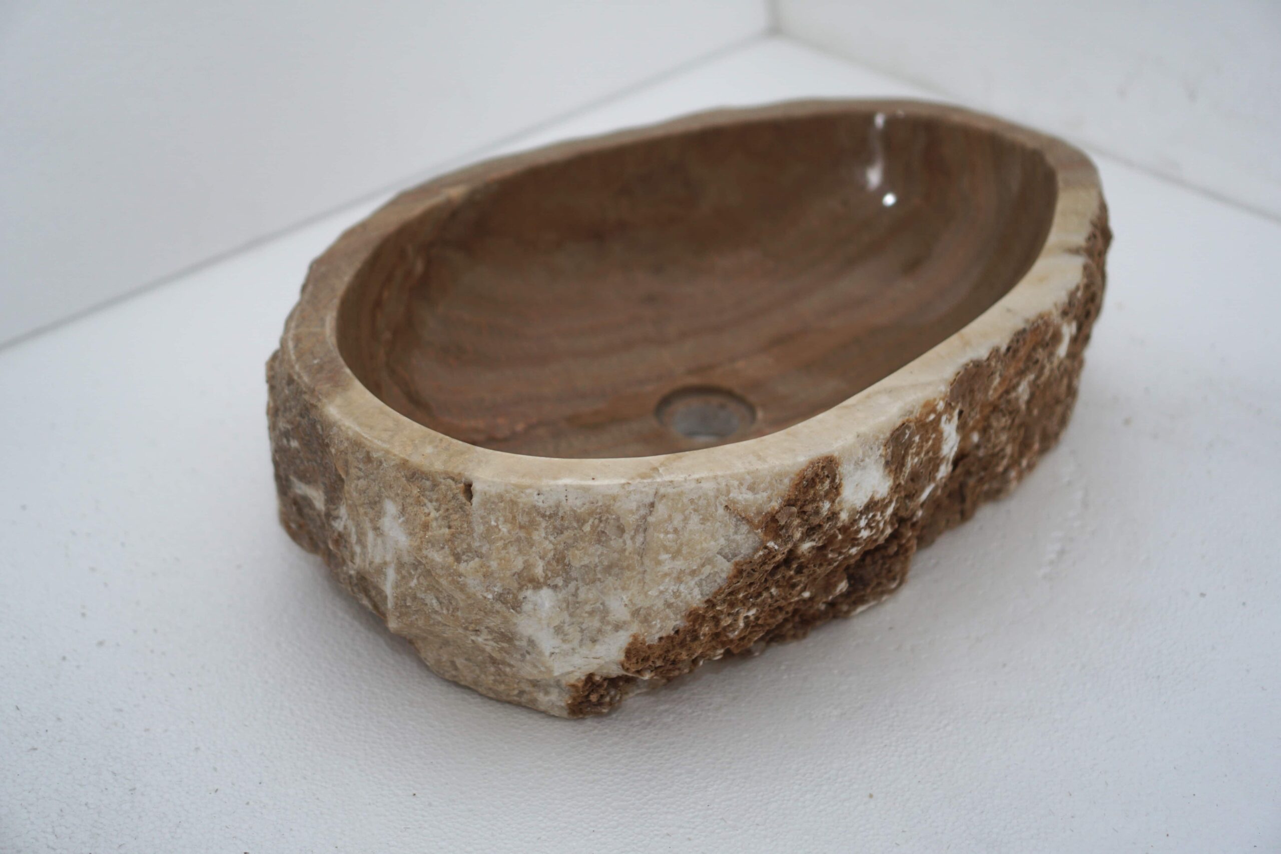 owalna umywalka kamienna brązowa