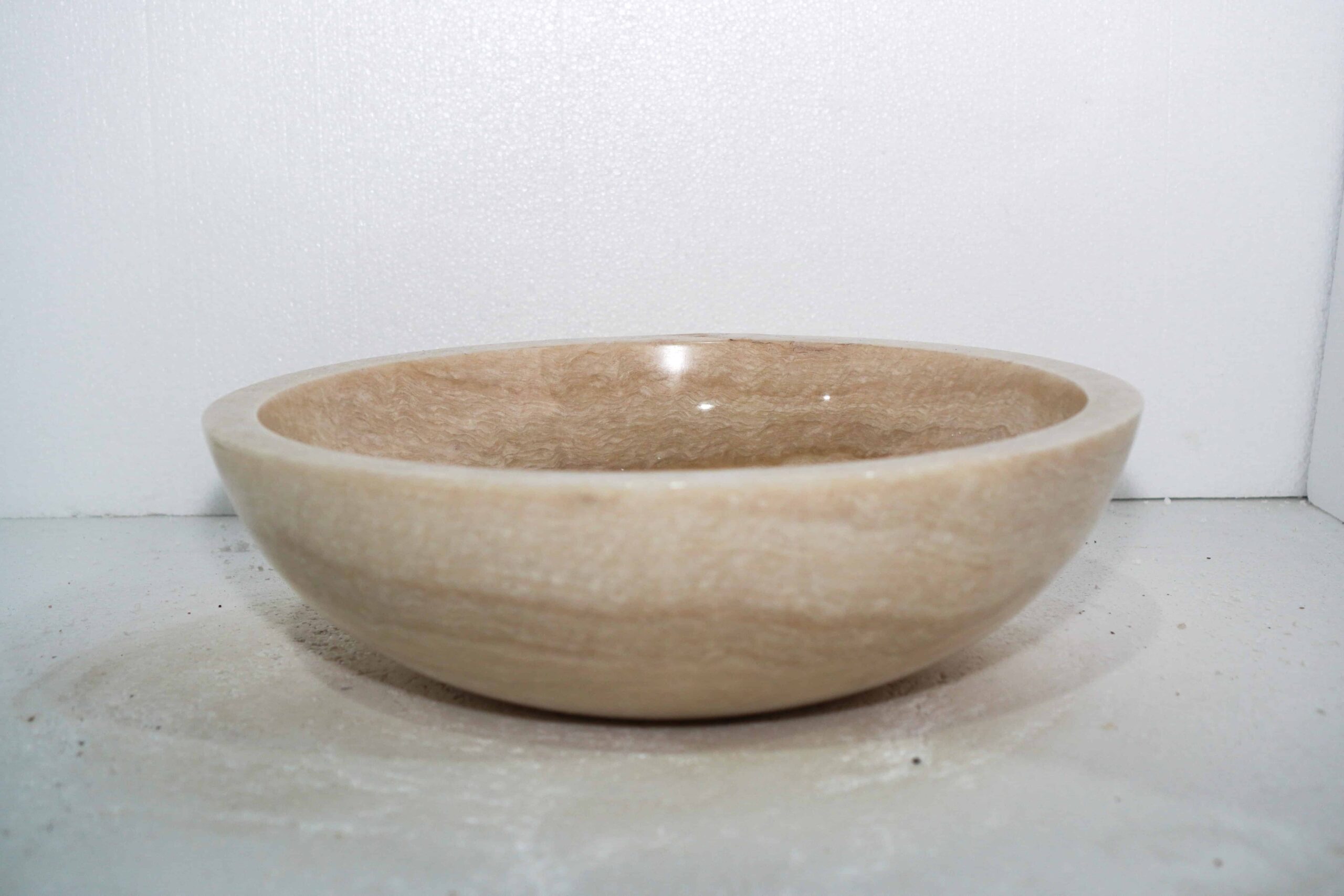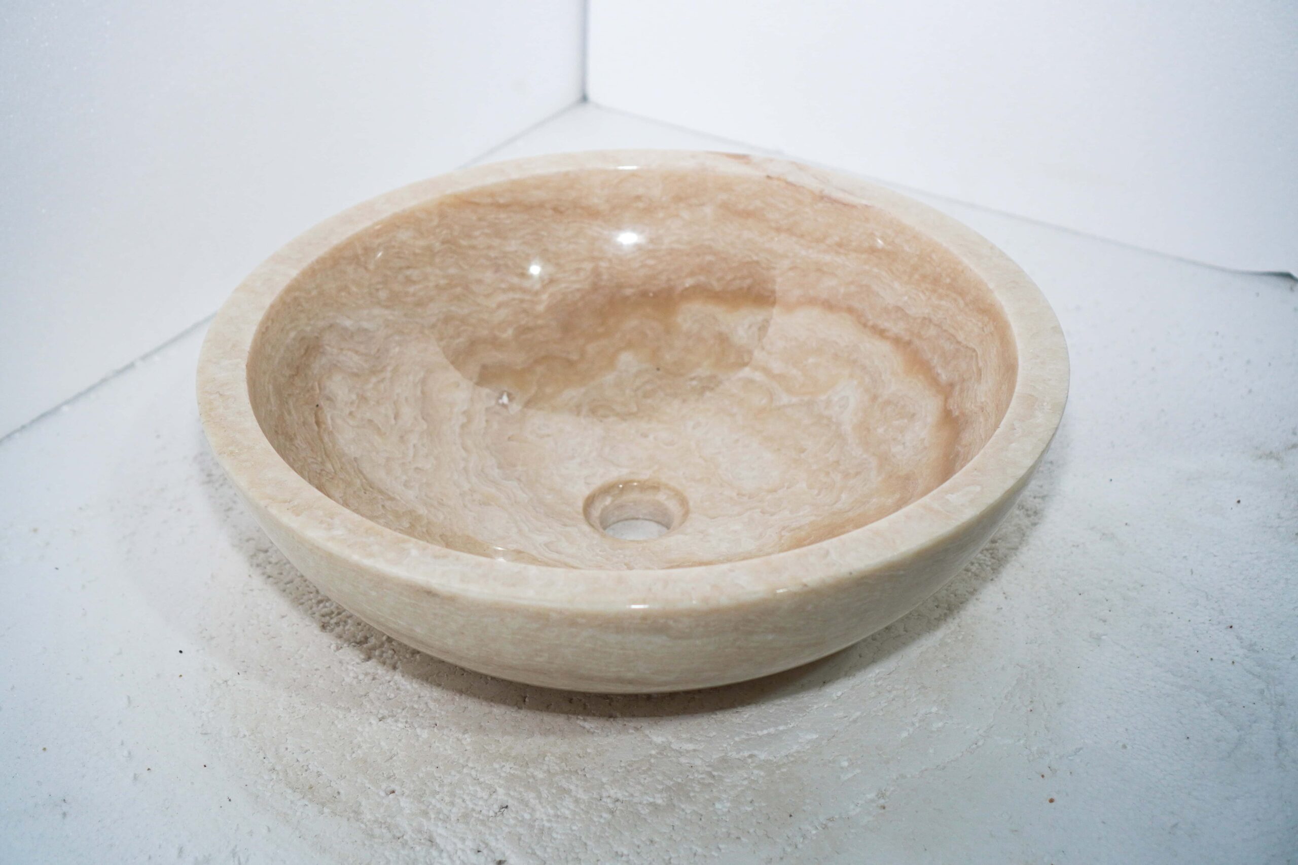 The sink you see in the photo is exactly what you’ll get. Expertly crafted in Bali from high-quality stone. Dimensions: 50x50x15. It’s a beautiful and timeless addition to your bathroom.