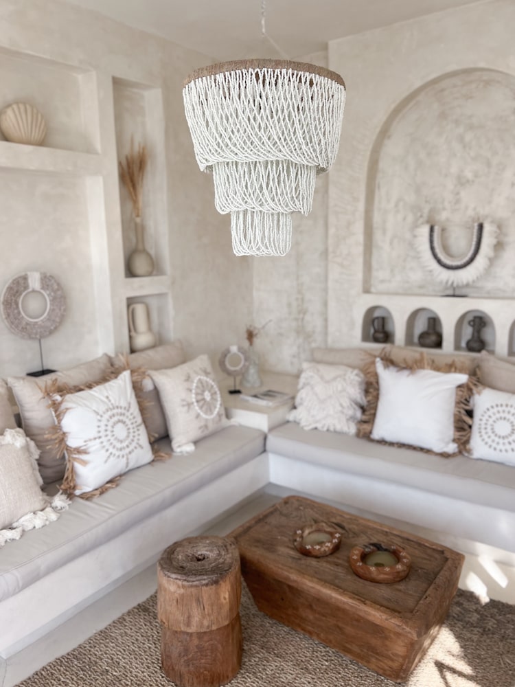 The White Beaded Pendant INDAH is a charming blend of simplicity and craft. With its soft curves and bright palette, it fits perfectly in bedrooms, home offices, or above reading corners.