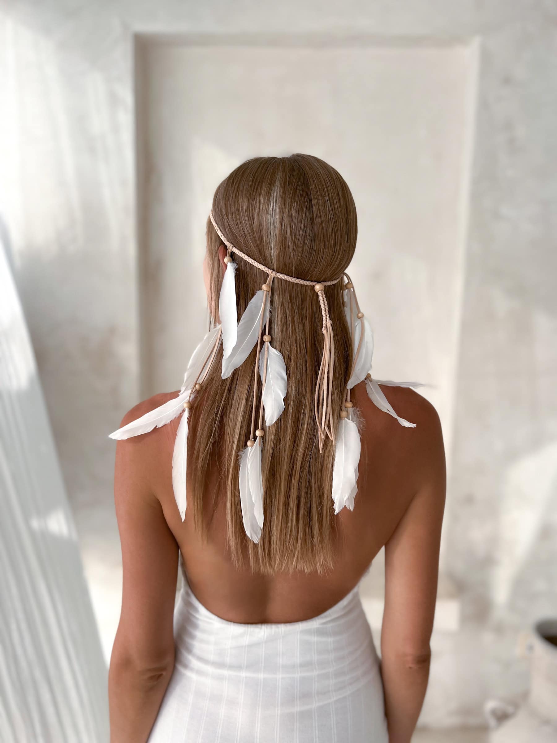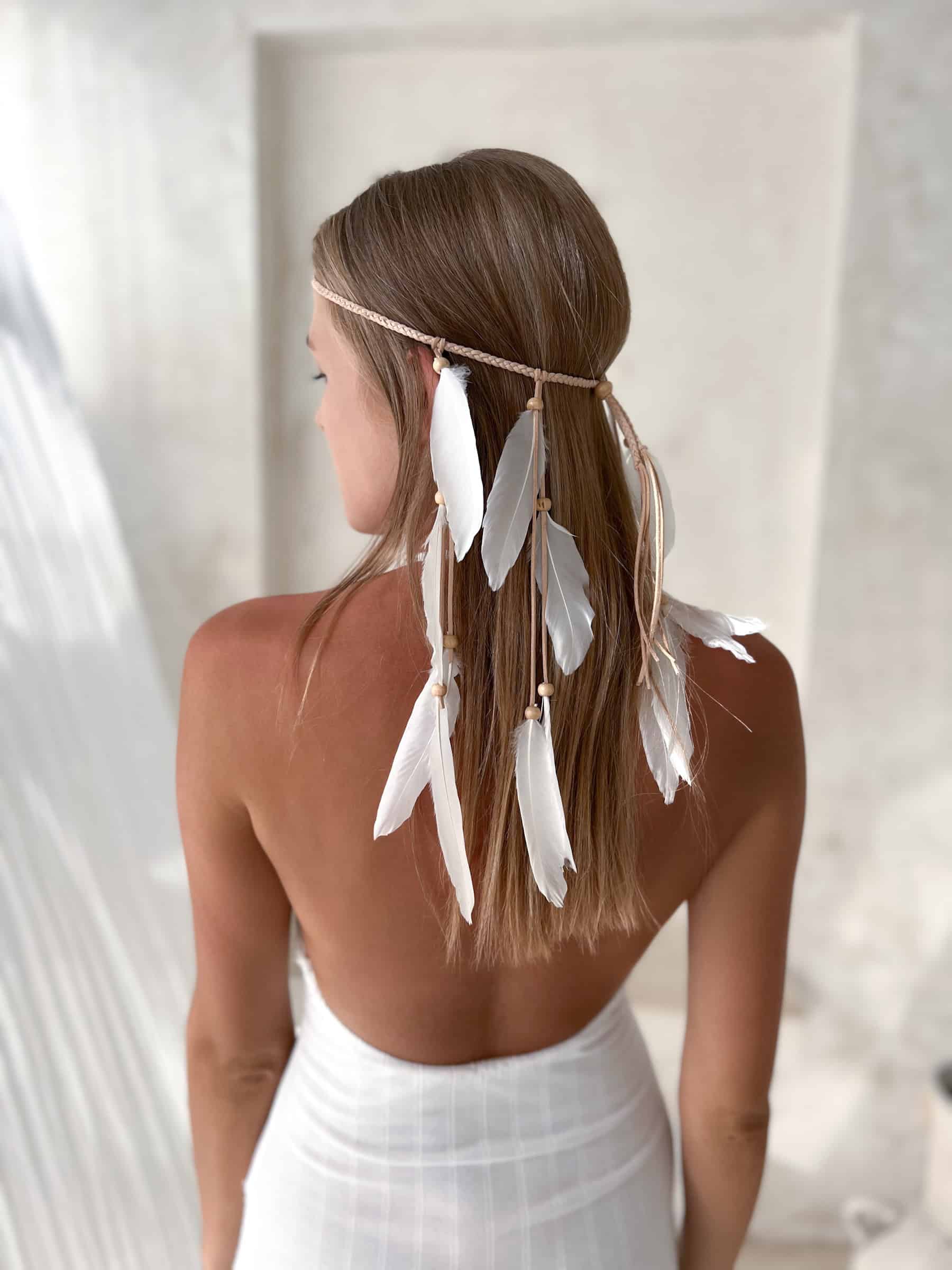 White Feather Hairband – Short Boho Style