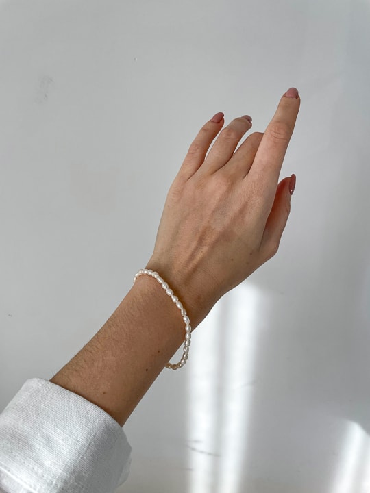 Bring timeless elegance to your outfit with this handcrafted white pearl bracelet. Made in Bali with natural freshwater pearls, it adds a delicate touch to both dressy outfits and relaxed beachwear.